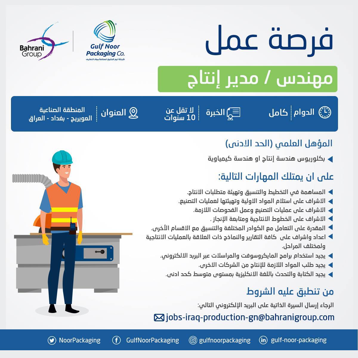 من يجد في نفسه الخبرة والكفاءه اللازمة التقديم بأرسال السيرة الذاتية بصيغه PDF على الايميل التالي :